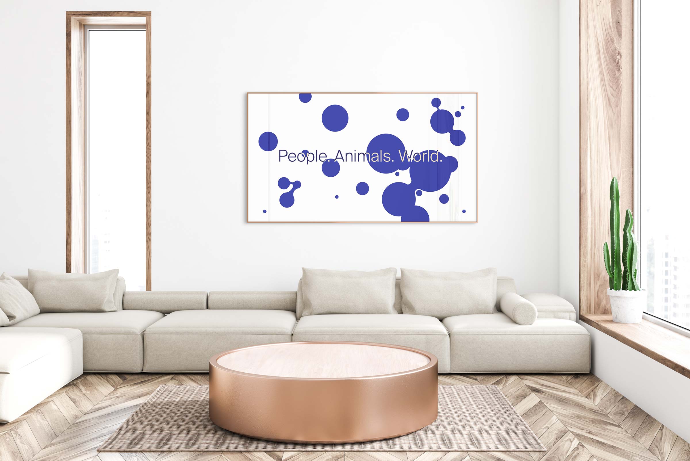 So, while feedback on our first slogan was generally positive, it still did not meet our standard for what cellular agriculture deserved. Further refinement allowed us to originate the CAS Slogan, which would eventually culminate into the artwork, CAS Ethos. The CAS Slogan’s connection to CAS, beyond cellular agriculture, stands additionally for this philosophy of perfectionism, striving for the best, not the most. But years in the making, the ideation for CAS Ethos was in its nascent form. The artwork would ultimately combine our slogan which has guided us since our founding: For the People. For the Animals. For the World. and our website’s primary hero element, the abstract, interactive cells found throughout our site.